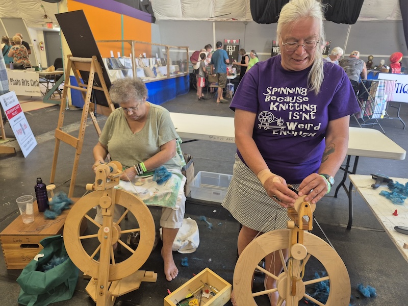 On several days at the fair, Arachne demonstrated weaving, spinning, and other fiber arts. This was a very fun community outreach.